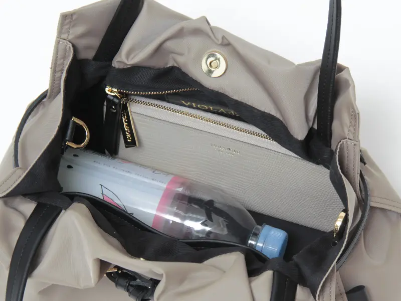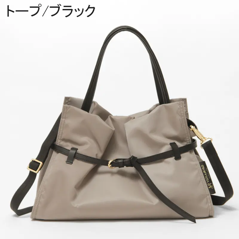 VIOLAd'ORO ヴィオラドーロ BIANCA ナイロン 2way トートバッグ (M) ≪4月初≫トープ/ブラック