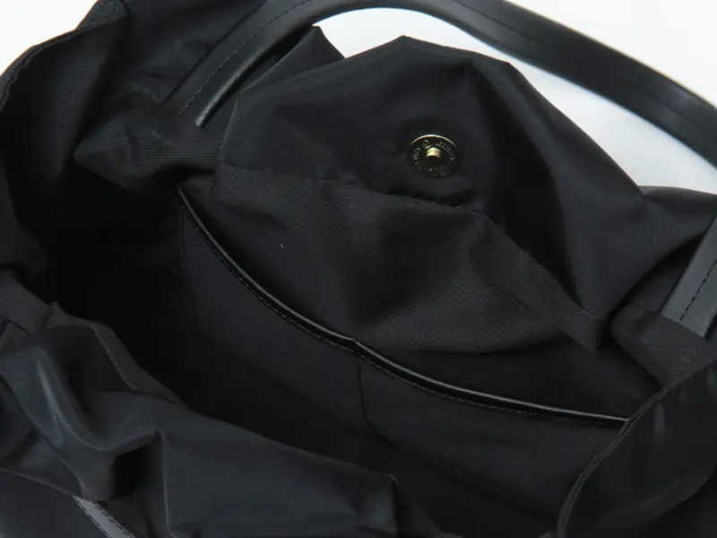 開閉はマグネット仕様。必需品はもちろん、A4サイズの書類やノートがぴったり収まり、500mlのペットボトルや折り畳み傘などもしっかり収まります。内ポケットも充実しており、細かな荷物の整理がしやすく、バッグの中がすっきり整います。軽量で弱撥水性も備えているため、天候を気にせず、年中使いやすいのも嬉しいポイントです。