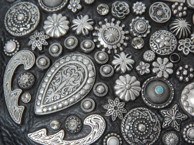 大小さまざまなスタッズを組み合わせ、ハートモチーフを描いたフロントデザイン。配置や質感の違いが、カンポマッジならではのクラフト感と奥行きを生み出します。本体には植物タンニンなめしの牛革を使用。染色と洗い加工によって生まれる色ムラやシワは、革本来の個性です。使い込むほどに柔らかく馴染み、表情を深めていく、campomaggiならではのレザーの魅力を楽しめます。