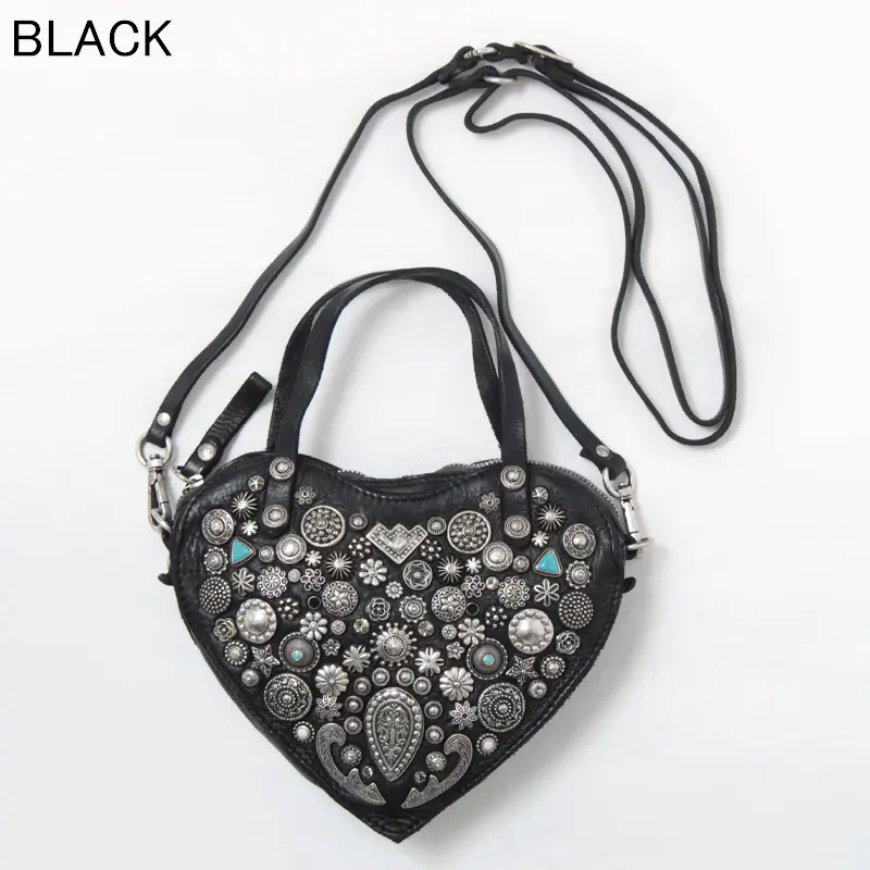 CAMPOMAGGI カンポマッジ VALENTINA ハート型 スタッズ 2way ミニ トートバッグ BLACK
