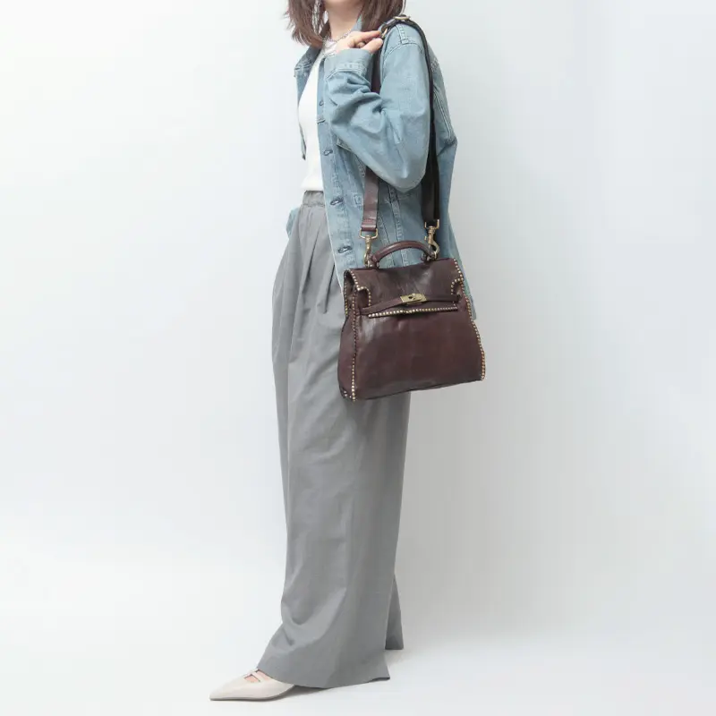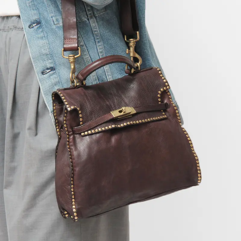 CAMPOMAGGI カンポマッジ GINEVRA L スタッズ 2way ハンドバッグ MORO