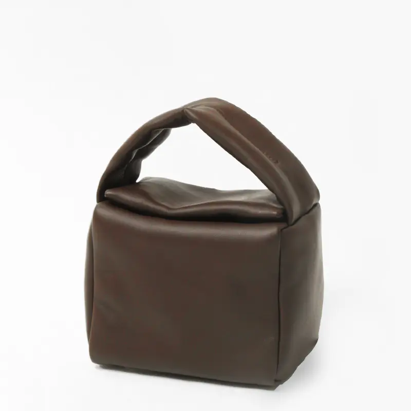 Bucket Baggage バケットバゲージ Puff Cube Small シープレザー ハンドバッグ DK.BROWN
