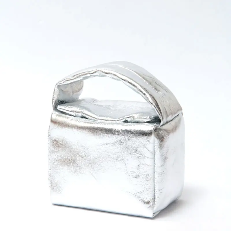 Bucket Baggage バケットバゲージ Puff Cube Small シープレザー ハンドバッグ SILVER