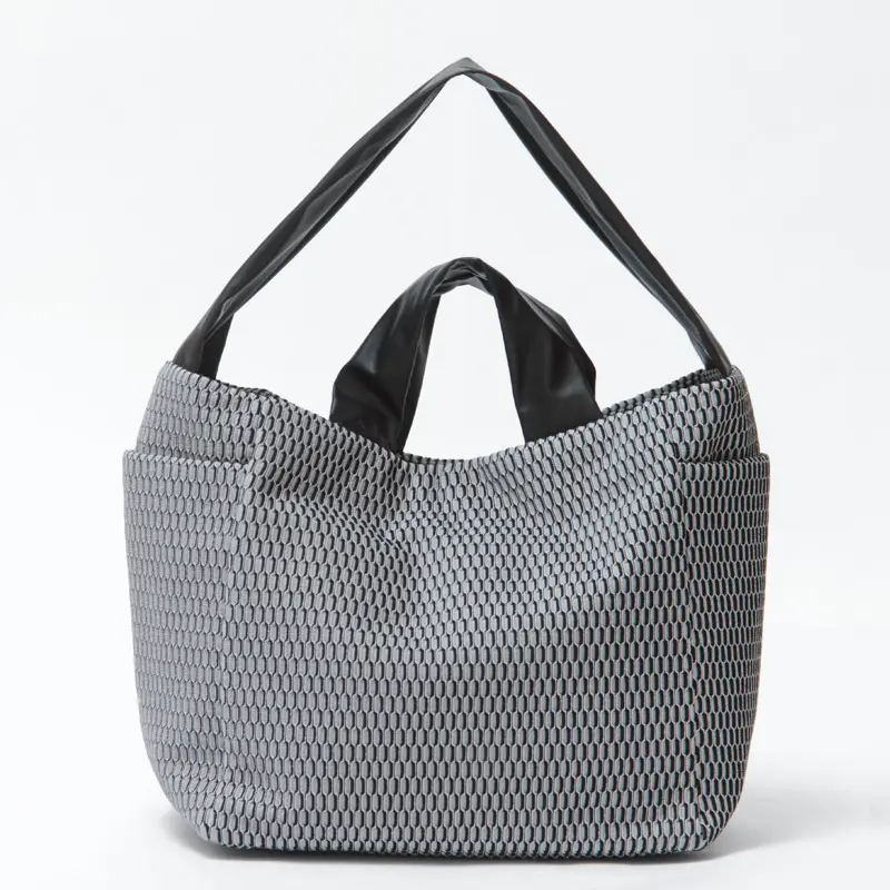 裏地には高級感のあるシルバーグレーを採用し、トートバッグを開いた瞬間に感じる、さりげない高級感が大人の余裕を演出します。明るい色合いのためバッグの中が見渡しやすく、必要なものをすぐに見つけられます。