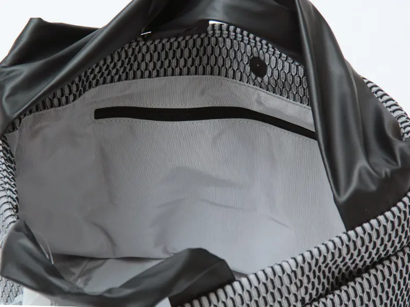 両サイドにはオープンポケットを備え、500mlのペットボトルが収納可能な大きめサイズ。