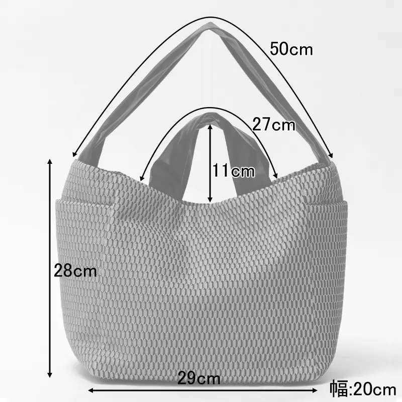肩掛け・手持ちのどちらにも対応する2way仕様で、シーンに合わせた持ち方が可能です。ハンドルを内側に織り込むと、トートバッグやワンショルダーバッグになります。太く柔らかな合皮のハンドルは、肩に掛けても食い込みにくく、荷物の重さを感じにくい設計。手に持ったときはバッグの口元を自然に覆うため、中身が見えにくいのも嬉しいポイントです。