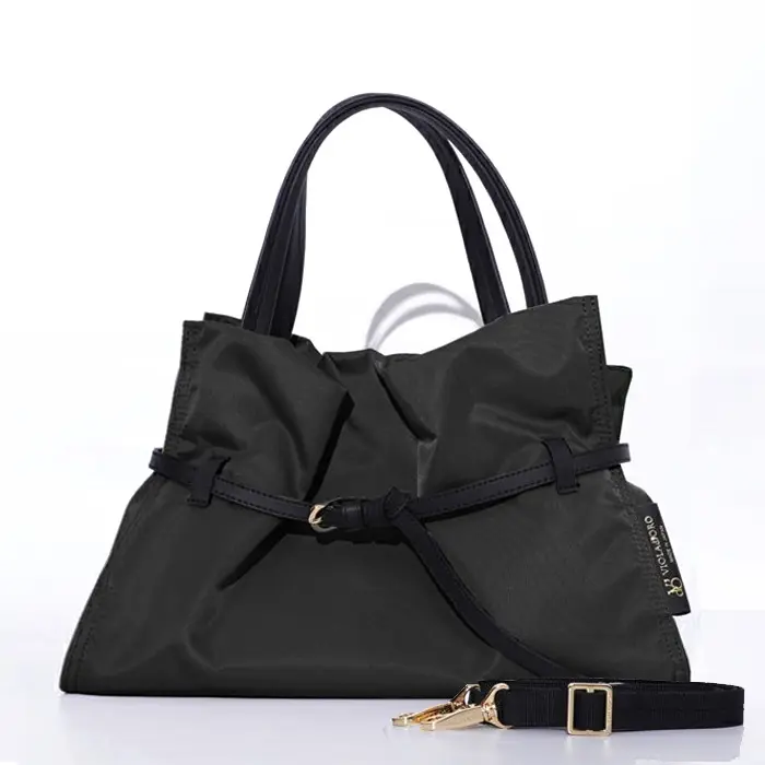 VIOLAd'ORO ヴィオラドーロ BIANCA ナイロン 2way トートバッグ (M) ≪4月初≫ブラック/ブラック