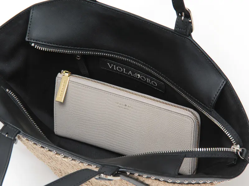 VIOLAd'ORO ヴィオラドーロ かごバッグ MIRO スタッズ アバカ トート 品番:v-9009
