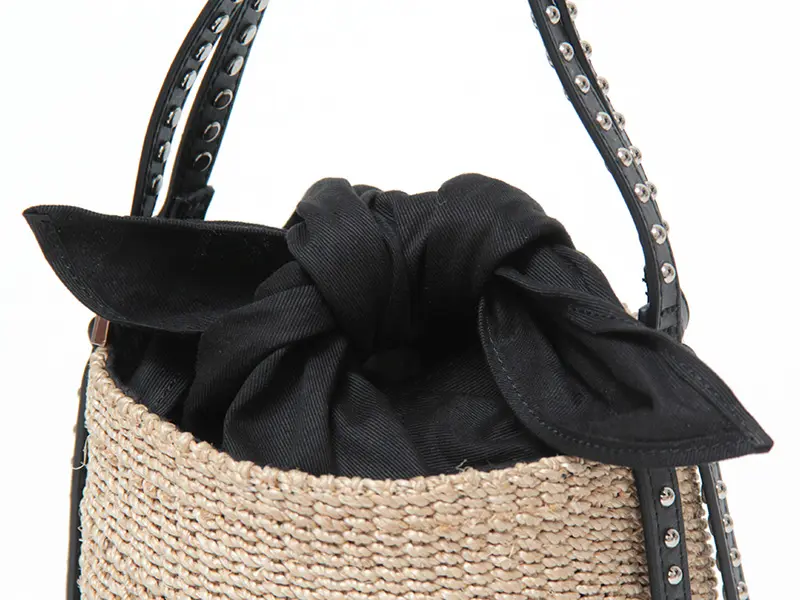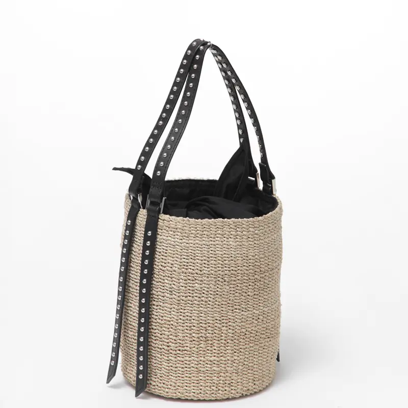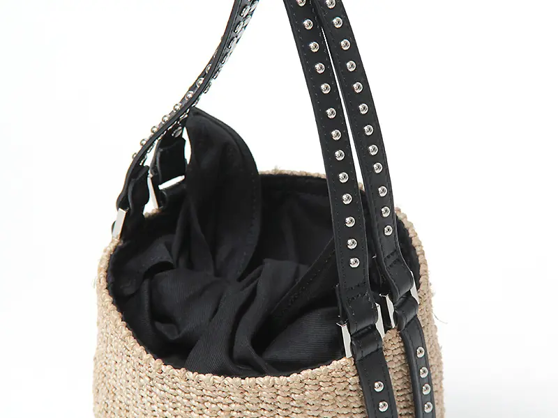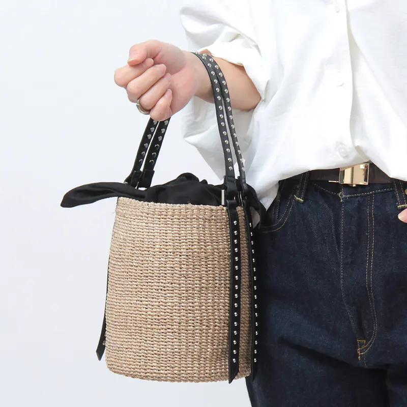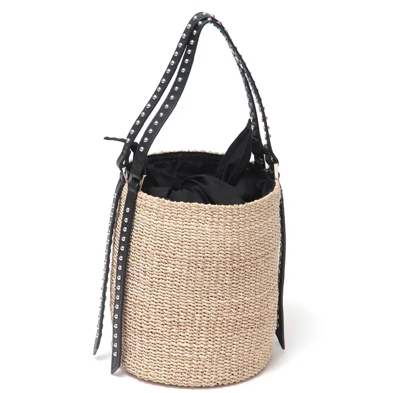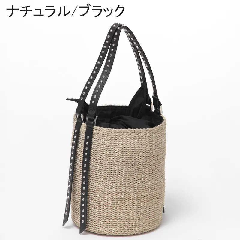 VIOLAd'ORO ヴィオラドーロ ヴィオラドーロ VIOLAd'ORO / かごバッグ MIRO アバカ スタッズ バケツ型 V-9007 ≪4月初≫ナチュラル/ブラック