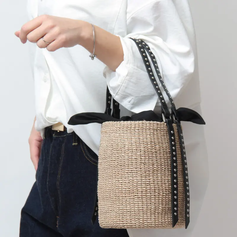 VIOLAd'ORO ヴィオラドーロ / ヴィオラドーロ VIOLAd'ORO / かごバッグ MIRO アバカ スタッズ バケツ型 V-9007