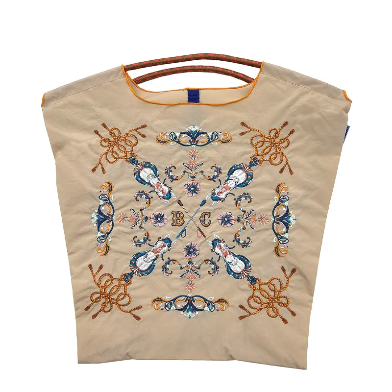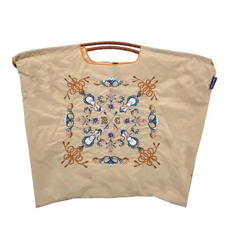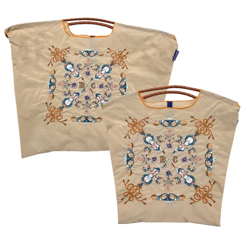 グラフィックデザインをそのまま刺繍で表現することで高級感とデザイン性を両立。耐久性・撥水性に優れた厚手素材を使用しており、重い荷物の持ち運びも安心です。折りたたむと手のひらサイズになり、買い物や外出中に荷物が増えた時にも便利。エコバッグとしても、プレゼントやギフトとしても人気のアイテムです。