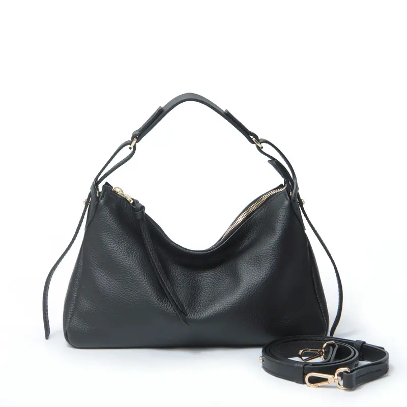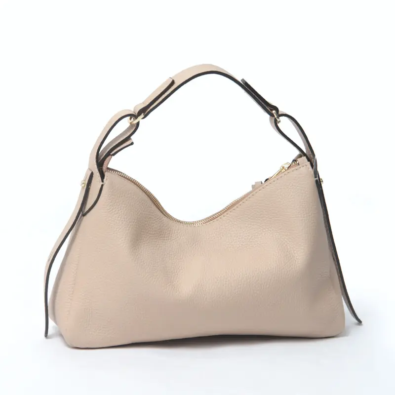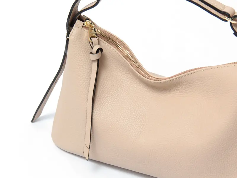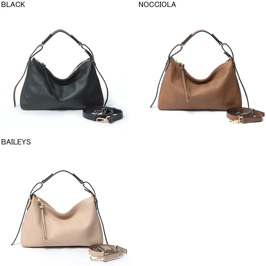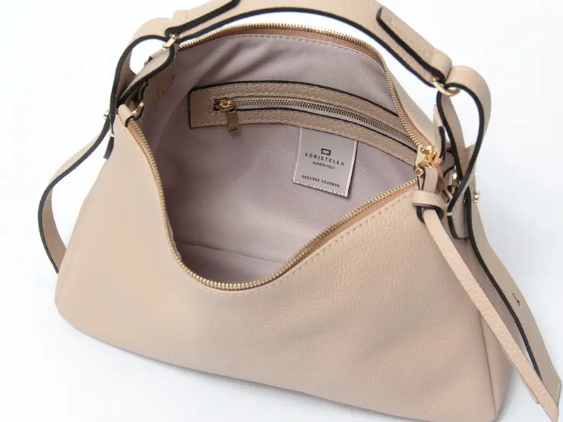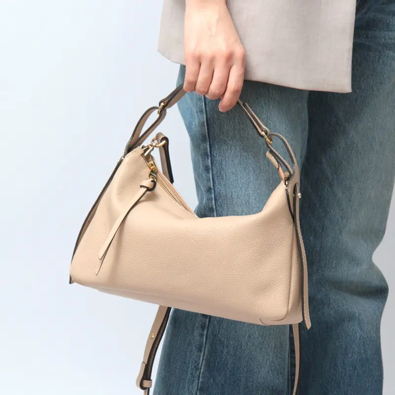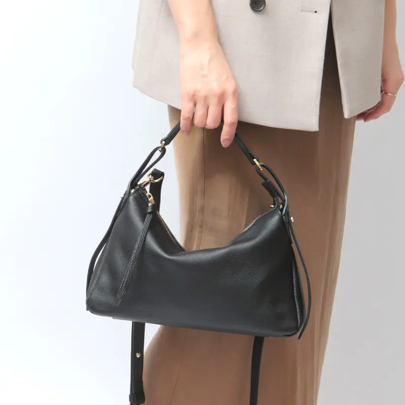 柔らかくしなやかなイタリア製レザーを使用。ほんのりとしたシボ感があり、表情豊かで傷や汚れも目立ちにくいのが特徴です。手に取るとしっとりと馴染む質感で、デイリーから休日のお出かけまで上品な印象を長く保ちます。柔らかなレザーが自然になじみ、持つだけでこなれた雰囲気を演出する、大人のための上質バッグです。