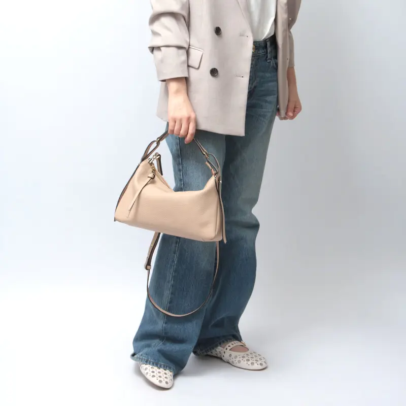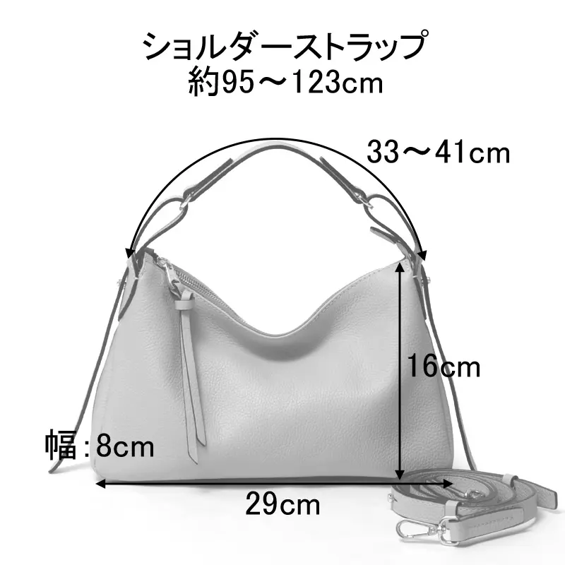 ハンドルは長さ調節ができ、手提げ・腕掛けもバランスよくお持ちいただけます。付属のショルダーストラップも長さ調節可能で、肩掛けや斜め掛けにアレンジできます。柔らかなレザーが手や肩に心地よく馴染み、デイリーから休日のお出かけまで、シーンや装いに合わせて持ち方を選べる2wayバッグです。
