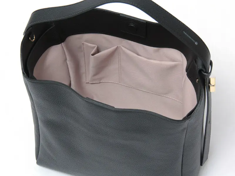 開閉はスムーズなマグネット仕様で、荷物の出し入れもストレスフリー。マチ幅をしっかり確保しているため、タブレットや手帳、大きめのポーチなどもしっかり収納できます。内側には3つのポケットを備え、小物を整理しやすい設計です。