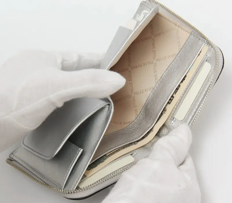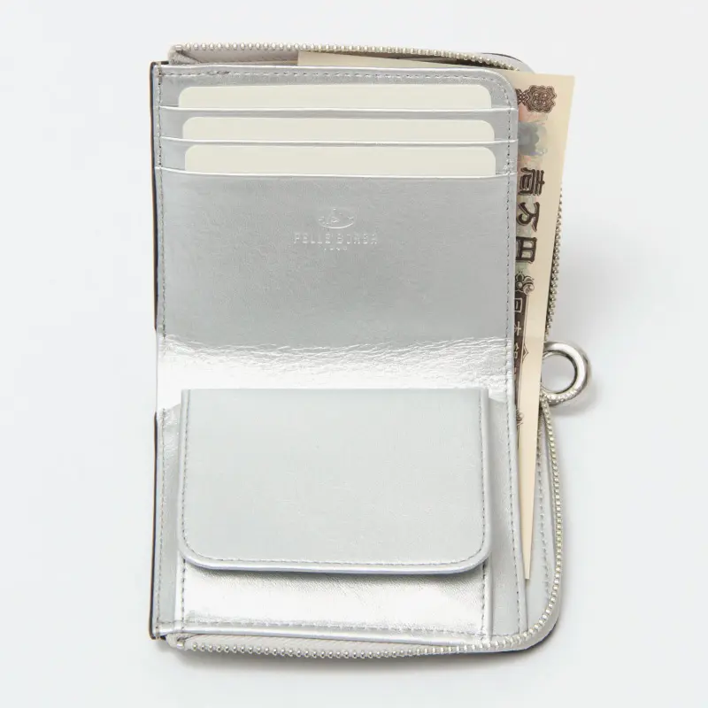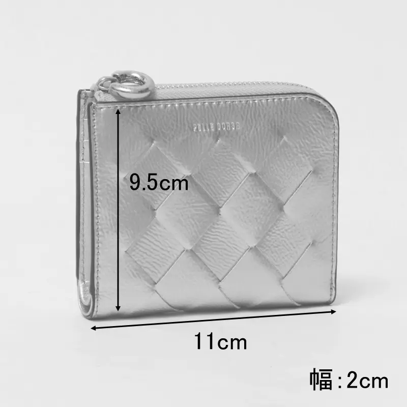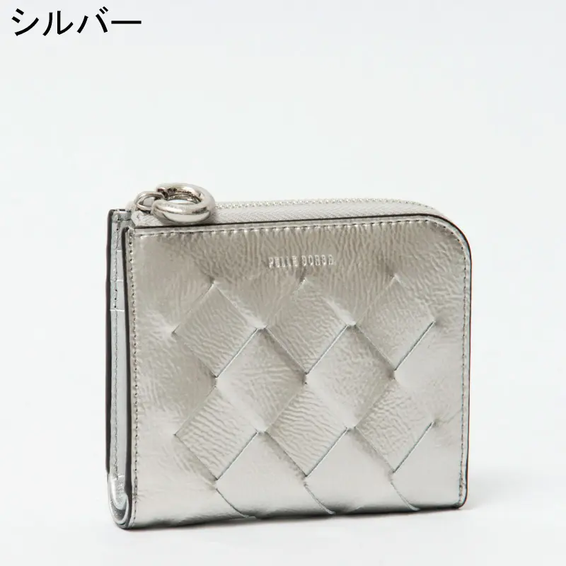 PELLE BORSA ペレボルサ CHRONO LUCE メッシュ L字ファスナー 二つ折り財布 シルバー