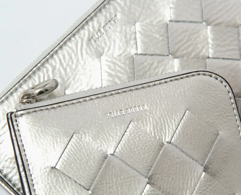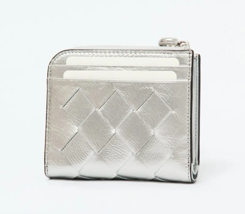 艶やかなエナメル革のイントレチャートが優雅に映える、PELLE BORSA(ペレボルサ)のCHRONO LUCE(クロノルーチェ)シリーズのミニ財布。熟練の職人が丁寧に編み上げた陰影のある表情と、もっちりとした柔らかな質感が魅力です。L字ファスナーを開けば、BOX型小銭入れと札入れ、計7か所のカード収納を備えた機能的な設計。縦向きのまま支払いが完結するスマートな導線で、所作まで美しく整えます。