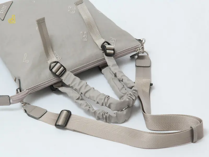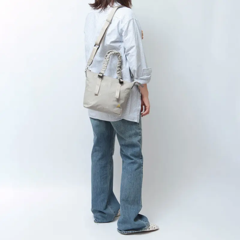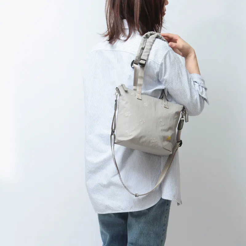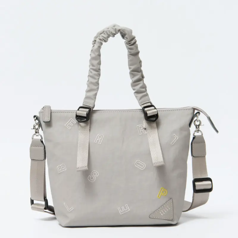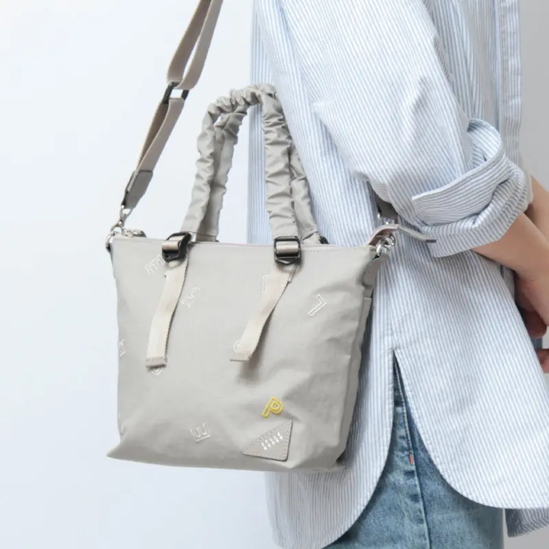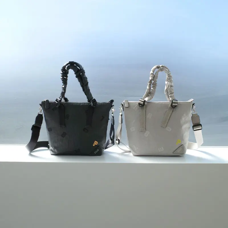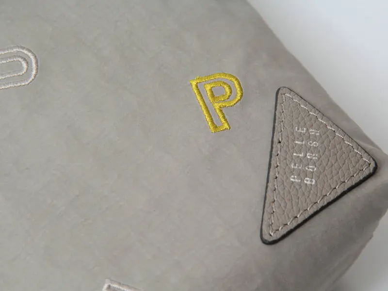 耐久性に優れたCORDURA®ファブリックを使用し、シワ加工でナチュラルでリラックス感のある表情。さらにPUコーティングで水や汚れに強く、日常使いに安心。生地にはブランドロゴのアルファベット刺繍を施し、「P」のみカラー刺繍でアクセントを加えています。