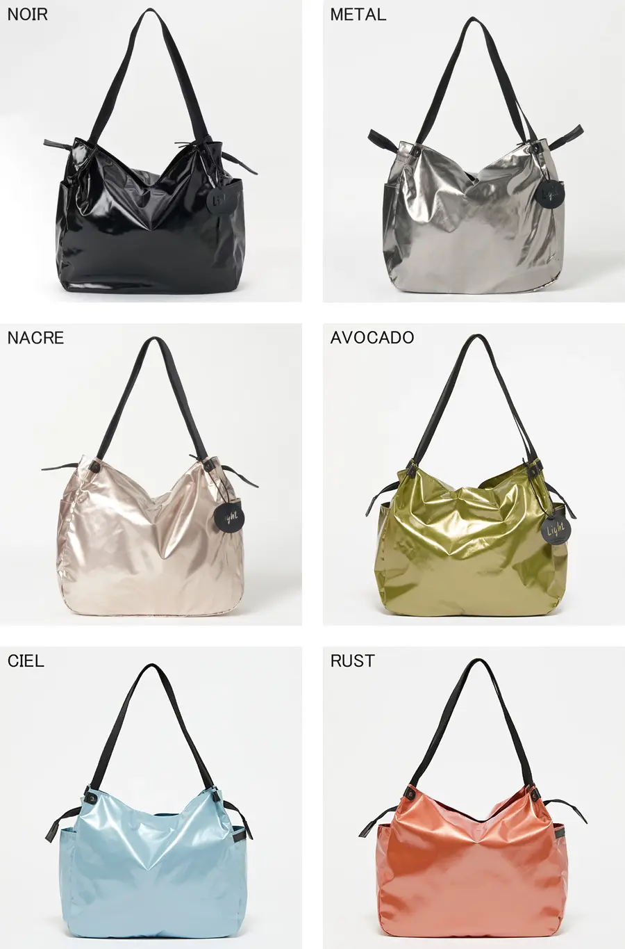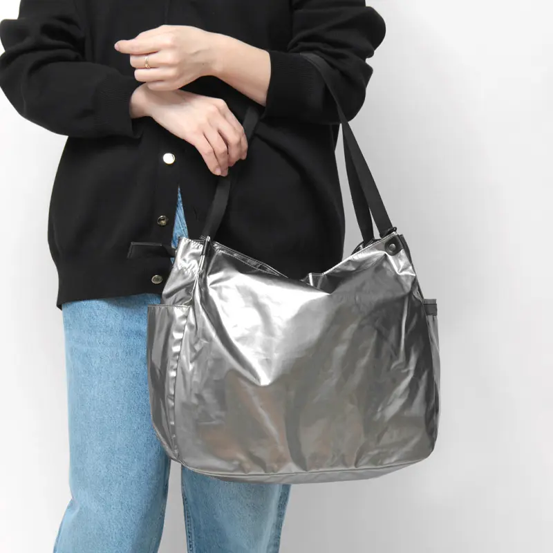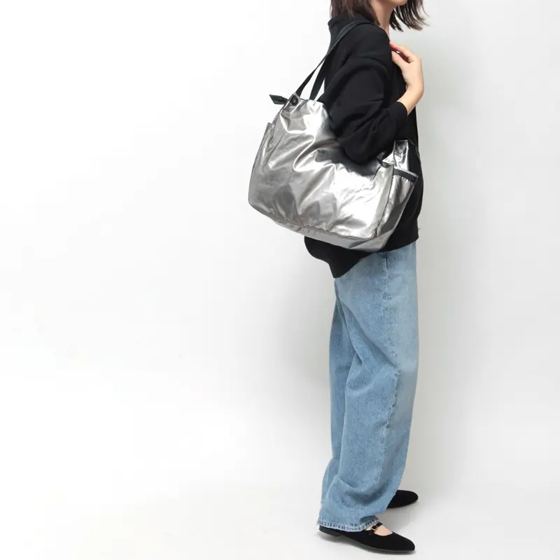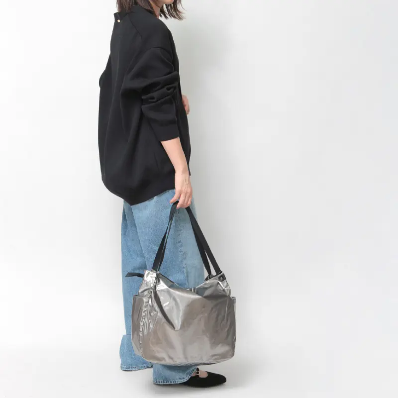 JACK GOMME/ジャックゴムを代表するLight シリーズのトートバッグ“LEVANT”。ニュアンスカラーのメタリック素材が品のある華やかさをスタイリングにプラスしてくれます。A4やノートパソコンが収まる万能なサイズ感と驚くほどの軽さで、お仕事バッグやジム通いなど幅広いシーンで活躍してくれます。水にも強い素材なので雨の日も安心です。