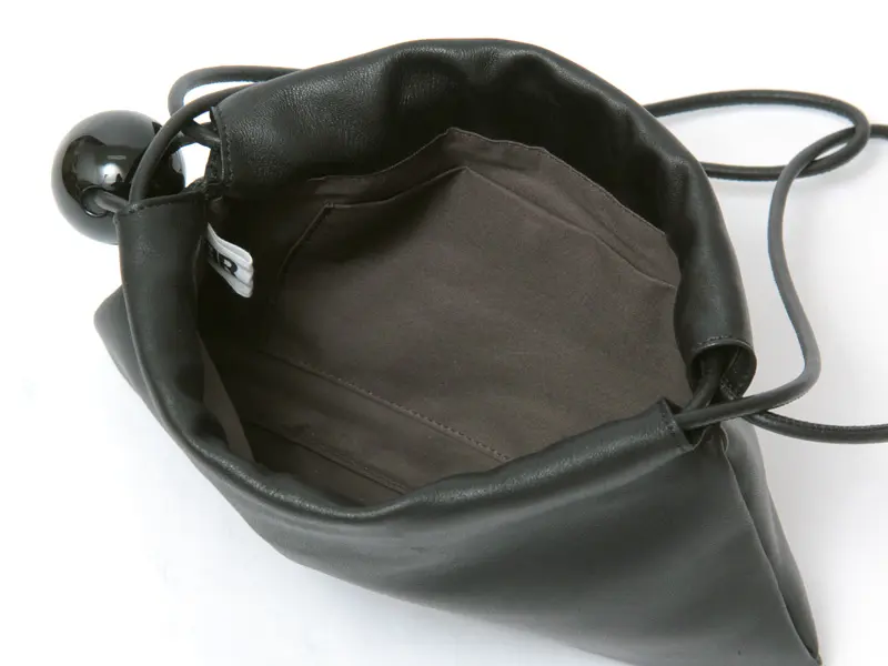 巾着仕様の開閉で、中身の出し入れもスムーズ。内ポケット付きで小物も整理して収納できます。デザイン性と日常使いのしやすさを兼ね備えた、頼れるミニショルダーです。