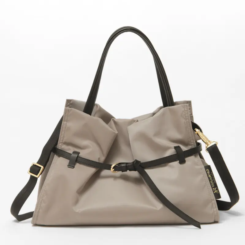 VIOLAd'ORO ヴィオラドーロ BIANCA ナイロン 2way トートバッグ (M) V-2293 トープ/ブラック