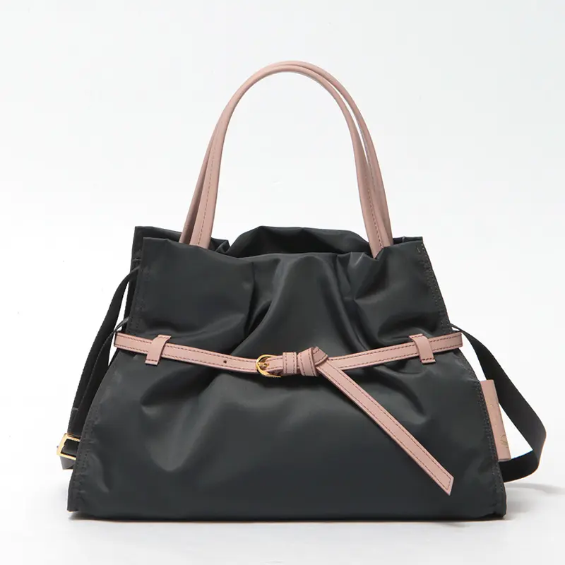 VIOLAd'ORO ヴィオラドーロ BIANCA ナイロン 2way トートバッグ (M) V-2293 チャコール/ピンクグレー