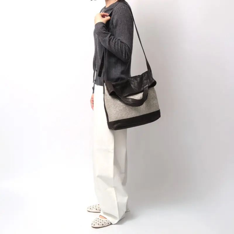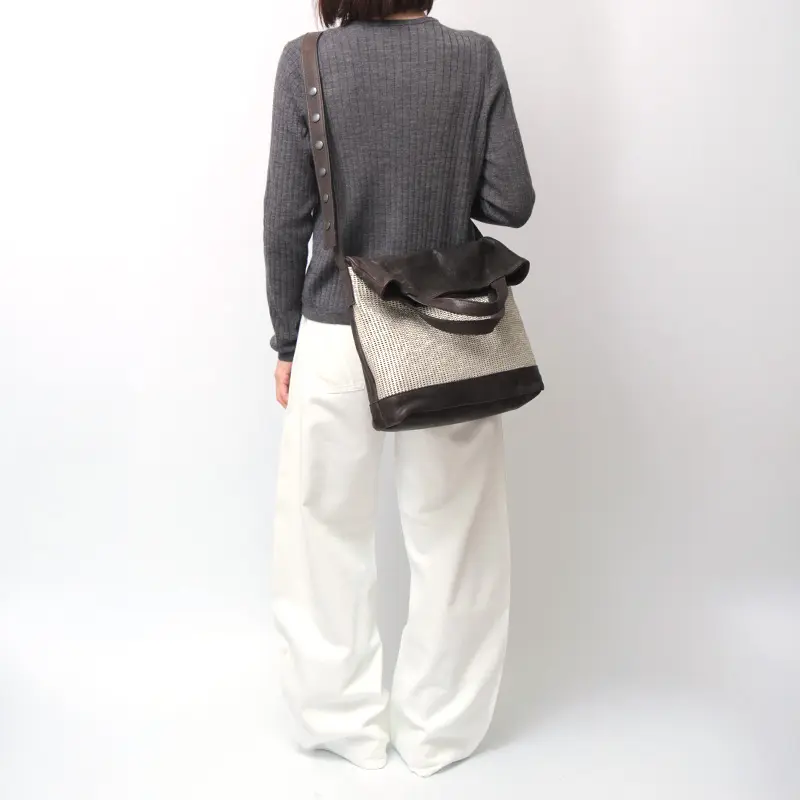 縦型で手提げも腕かけもすっきり持てるトートバッグ。折りたたむことでショルダーバッグとして使える便利な2wayデザインです。スナップボタンでショルダーの長さを調節でき、肩掛けや斜め掛けでお楽しみいただけます。シーンやコーディネートに合わせてぴったりフィットします。