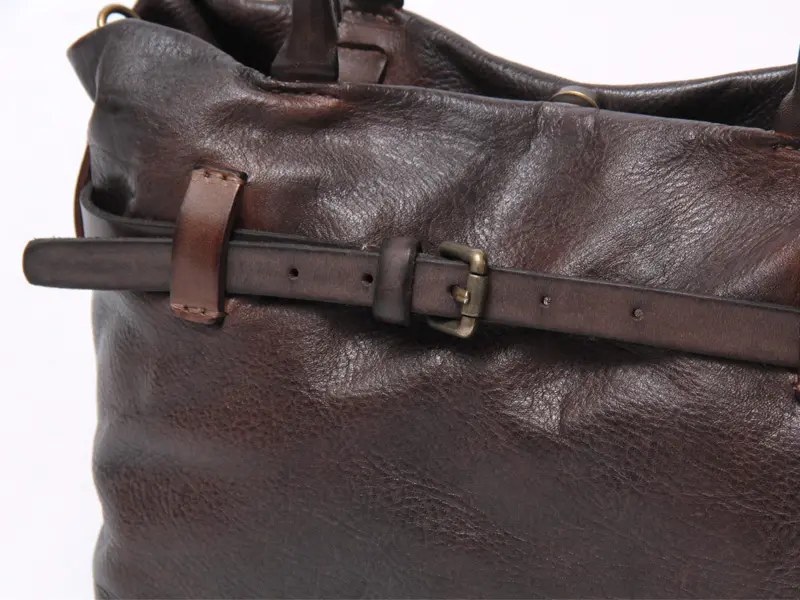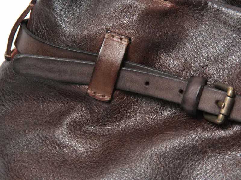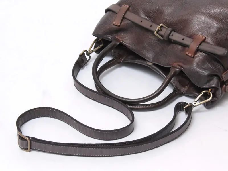 バッグ正面の ベルトを締めると自然にドレープが寄り、少し印象を変えてお持ちいただけます。