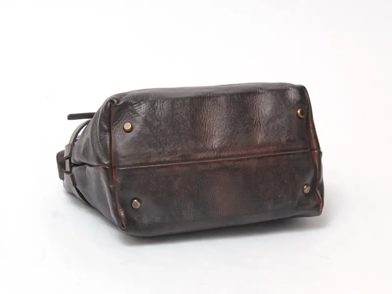 バッグの底面には底鋲を配置。地面に直接触れにくい設計で、レザーの擦れや汚れを軽減します。