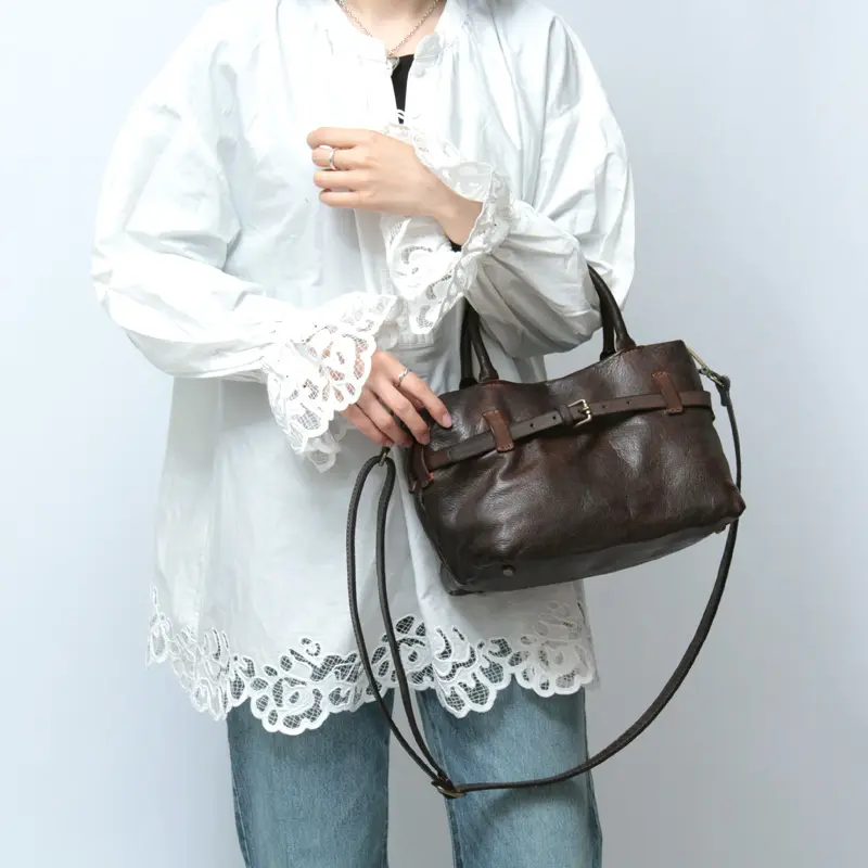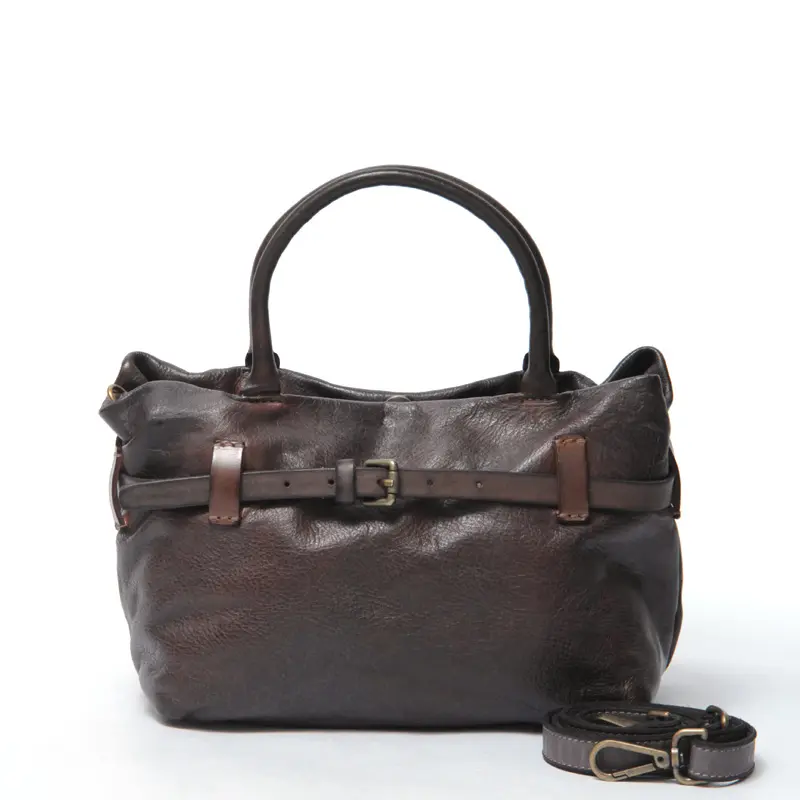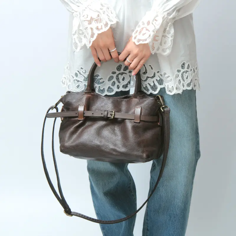 Alchimia(アルキミア)の2wayトートバッグ「MESTI」。イタリア製100%の牛革にピースダイ加工を施し、自然な色の濃淡と奥行きある風合いを引き出しました。バッグ正面にはベルト付きのデザインで、上品さとさりげないアクセントをプラス。必要最小限の荷物が収まるコンパクトサイズと、 ショルダーストラップ付きの2way仕様でデイリーからお出かけまで活躍します。