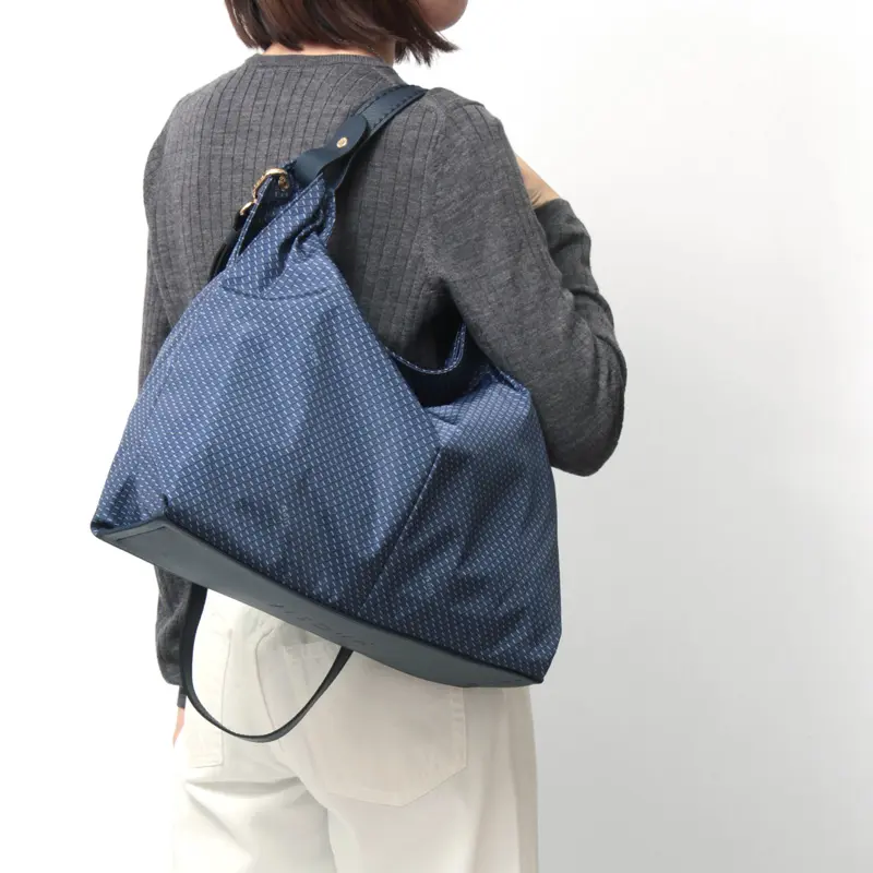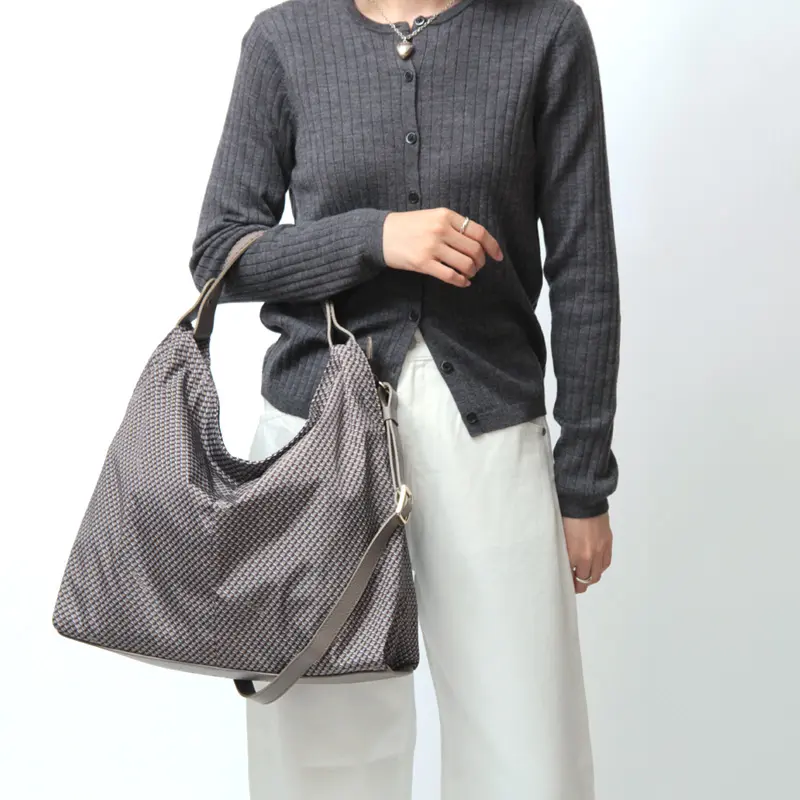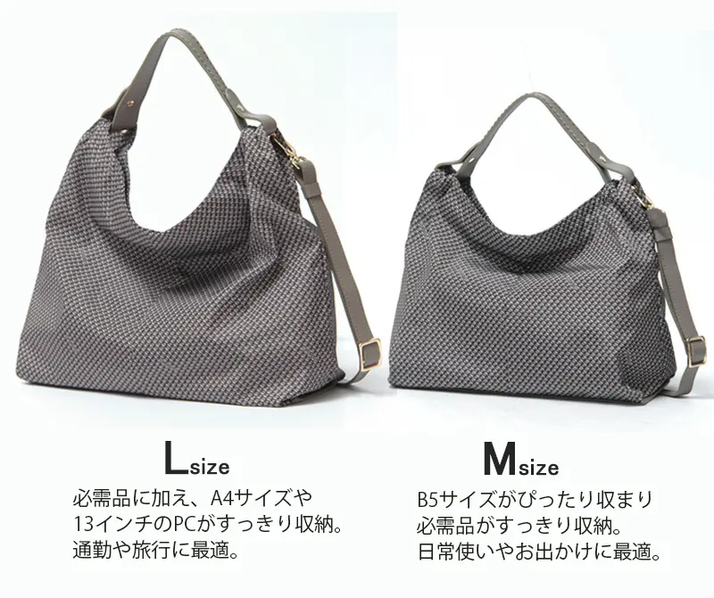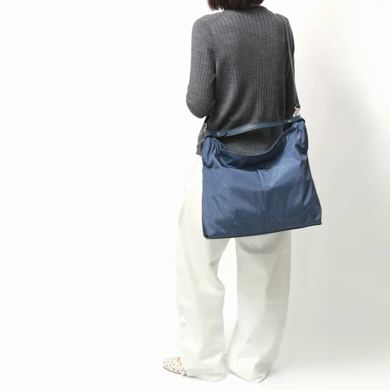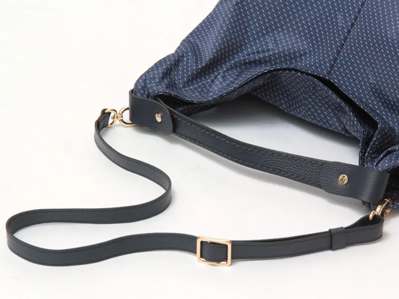 ショルダーストラップは取り外しと長さ調節が可能。肩掛けや斜め掛け、手持ちなど、その日のスタイルやシーンに合わせてアレンジできます。クロスボディで持てば両手が空き、ショッピングや旅行、通勤などアクティブなシーンにも便利です。