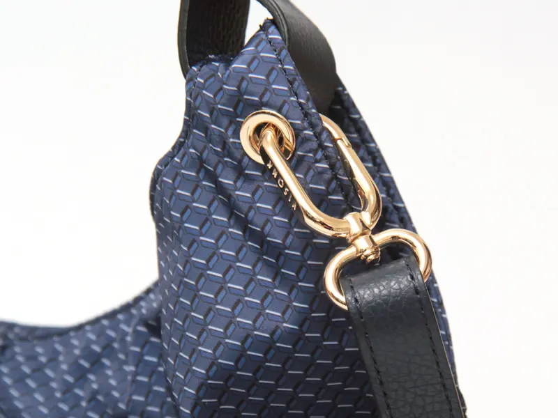 ブランドアイコンであるVISONAステッチをモチーフにしたオリジナルプリント。レザーと同色の生地に繊細な陰影と立体感を持たせることで、上品で華やかな表情を演出します。さらに、パーツや金具にもブランドロゴをあしらい、細かなディテールまで丁寧に仕上げられています。