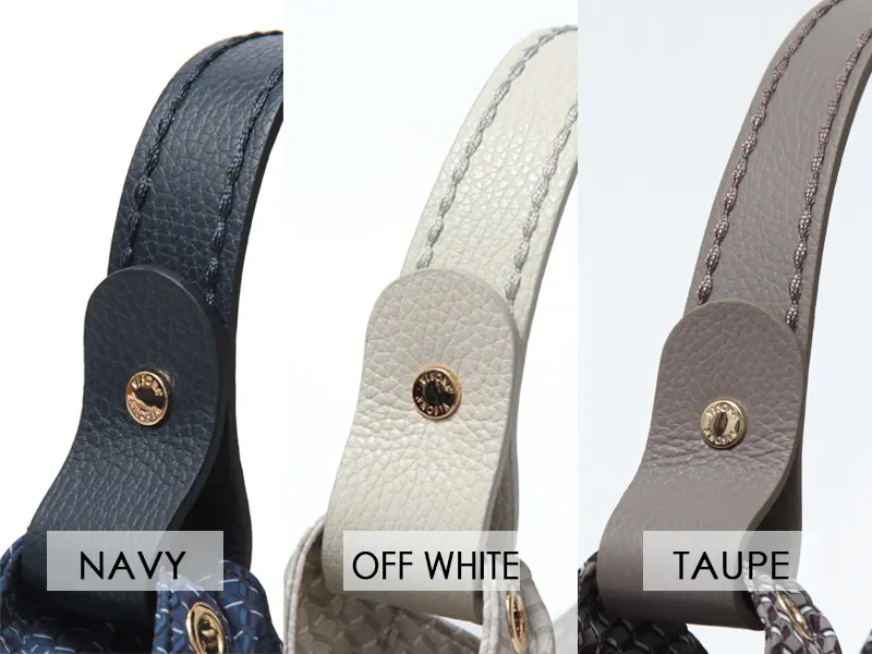 ハンドルと同色で施したブランドアイコンの「VISONAステッチ」が、さりげないアクセントとして上品な印象を添えています。