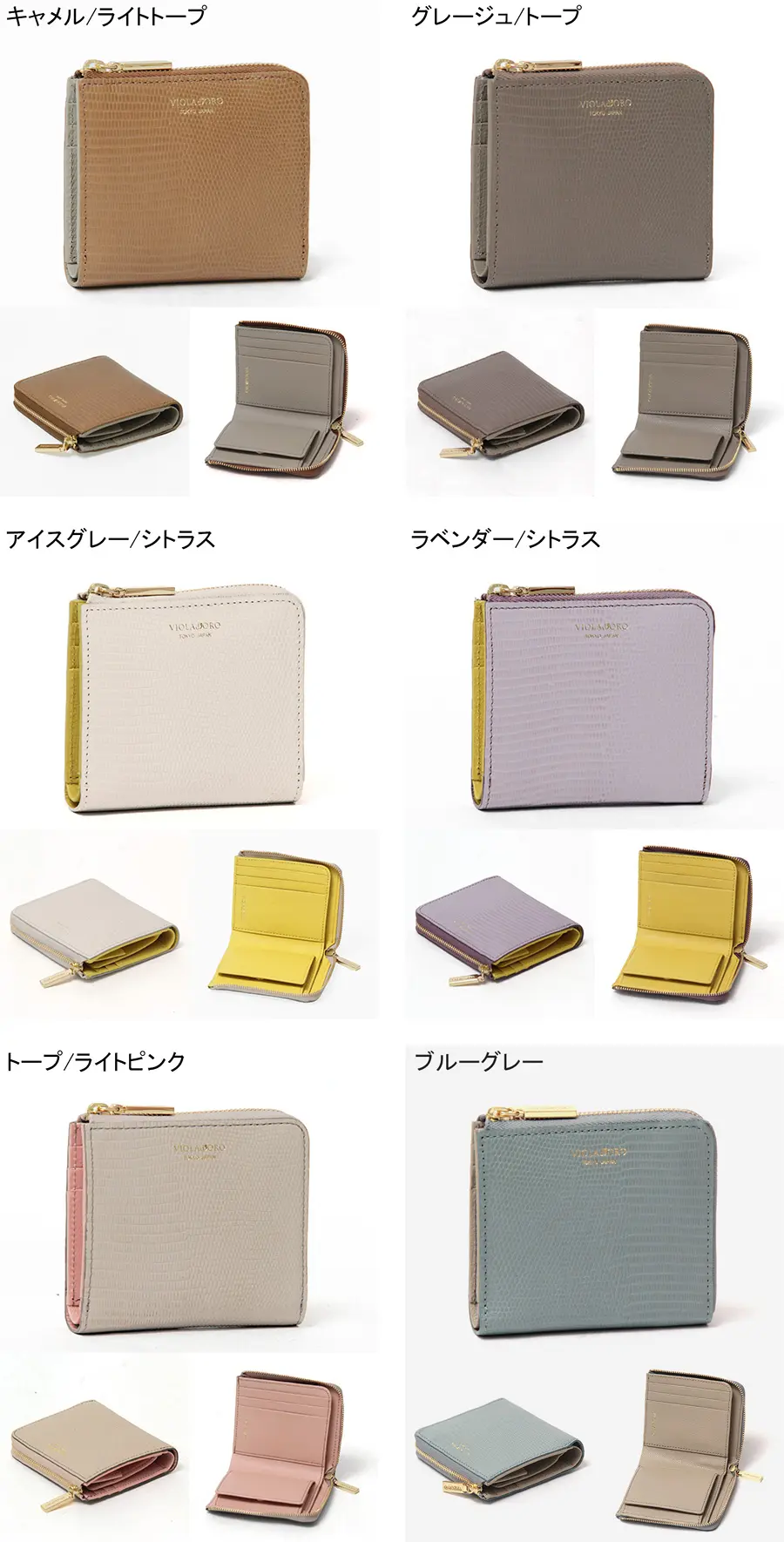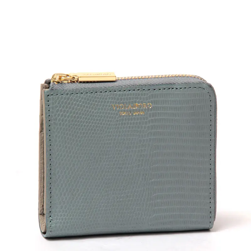 VIOLAd'ORO ヴィオラドーロ PORTA ポルタ リザード型押し L字ファスナー 二つ折り財布 V-5056 ミニ財布