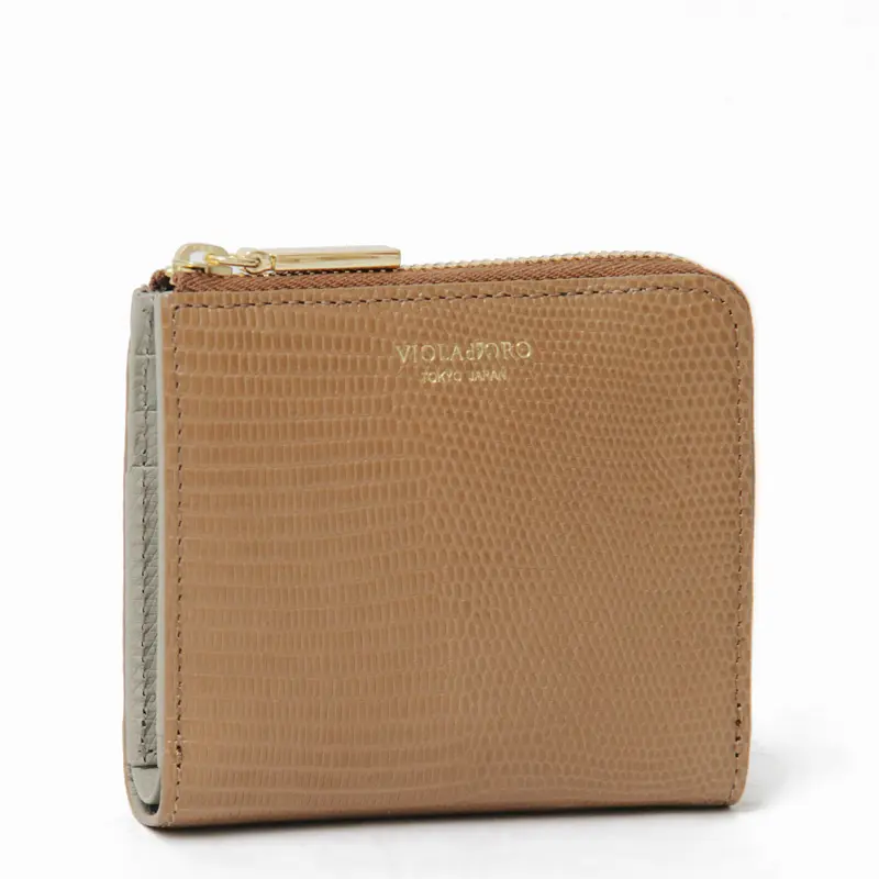 VIOLAd'ORO ヴィオラドーロ PORTA リザード型押し 二つ折り財布 V-5056 キャメル/ライトトープ