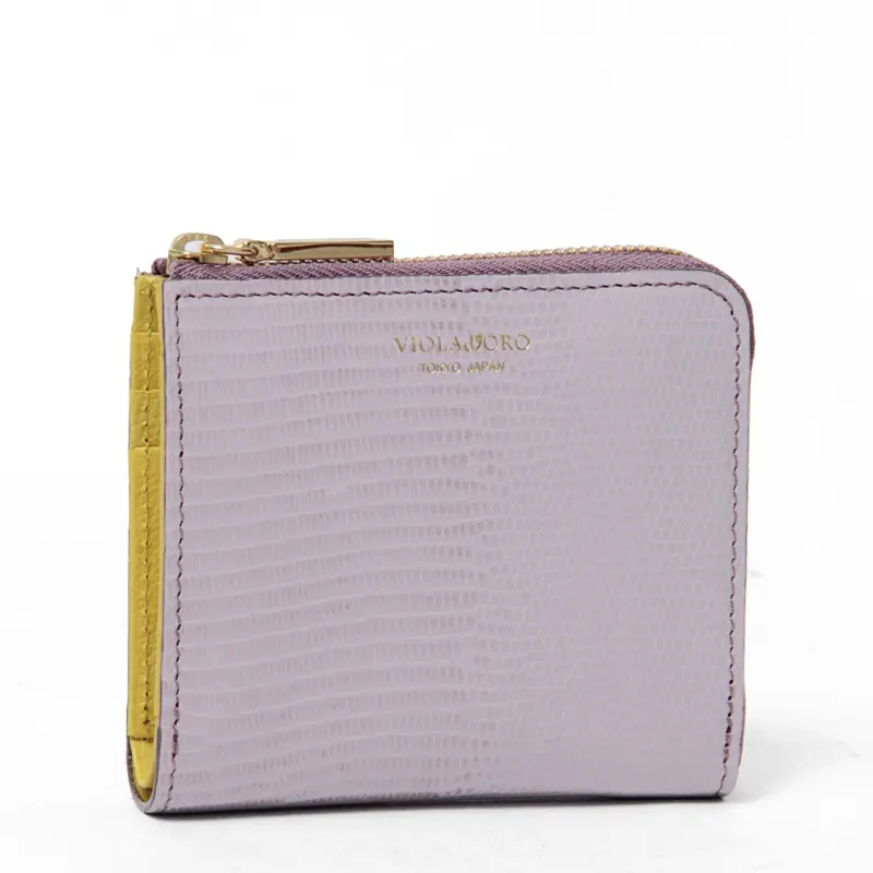 VIOLAd'ORO ヴィオラドーロ PORTA リザード型押し 二つ折り財布 V-5056 ラベンダー/シトラス