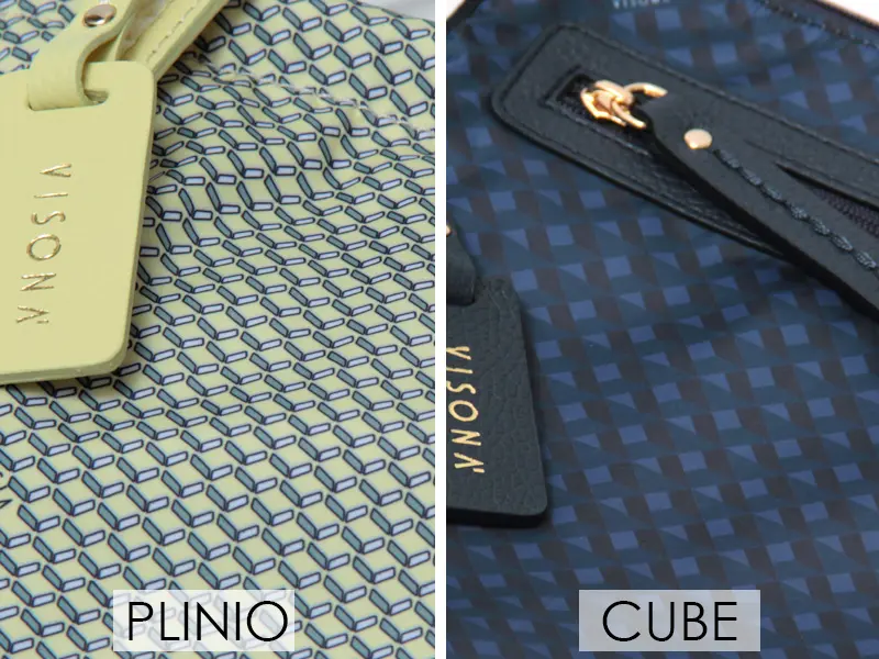ブランドアイコンのVISONAステッチを表現したオリジナルプリント。レザーと同色の生地に、繊細な陰影と立体感が上品な華やかさを演出し、スタイリングのアクセントとしても映える柄です。