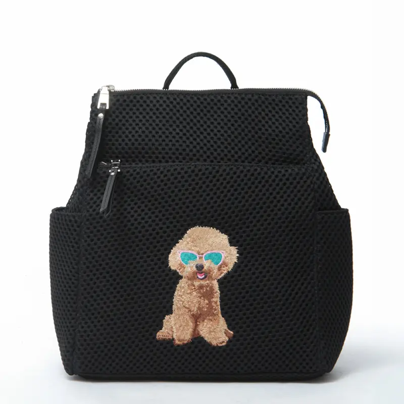 CHARUER シャルエ アニマル刺繍 メッシュ リュック プードル/ブラック