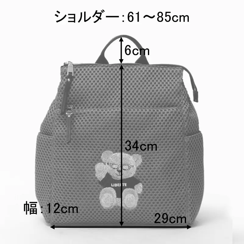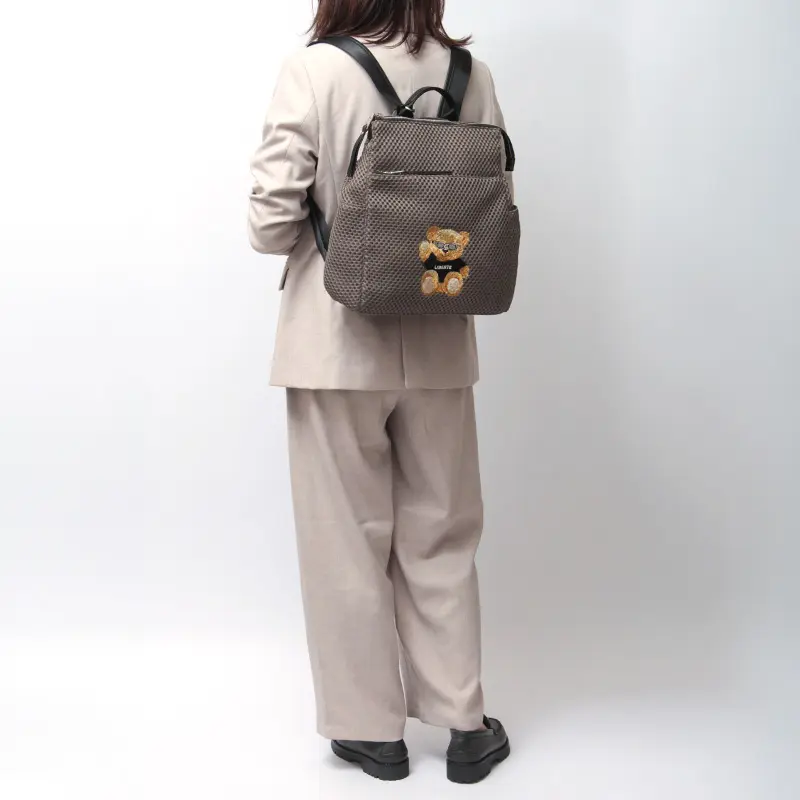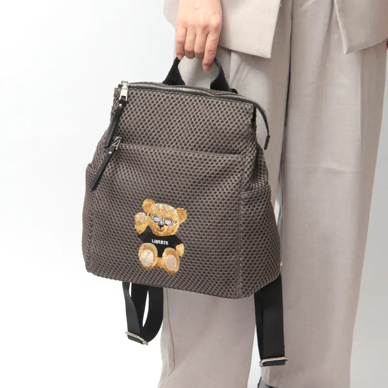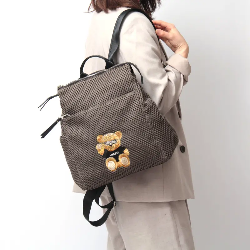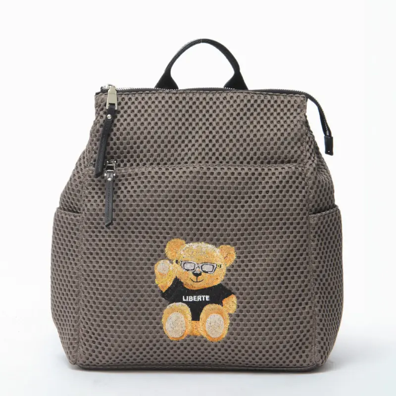 CHARUER シャルエ アニマル刺繍 メッシュ リュック テディベア/グレーベージュ