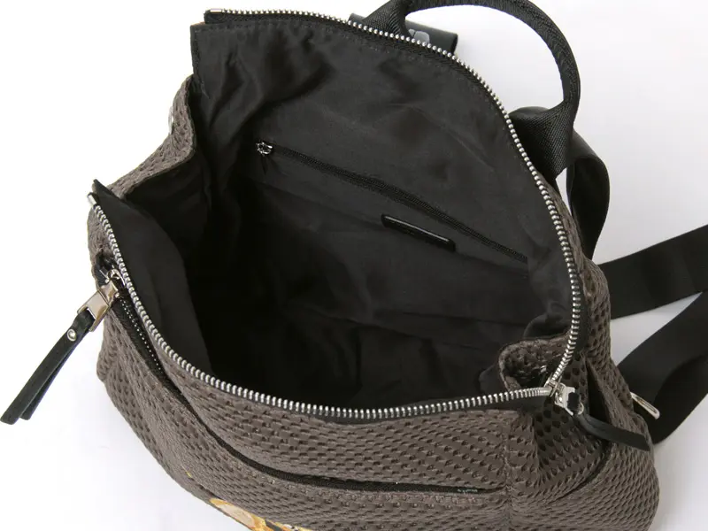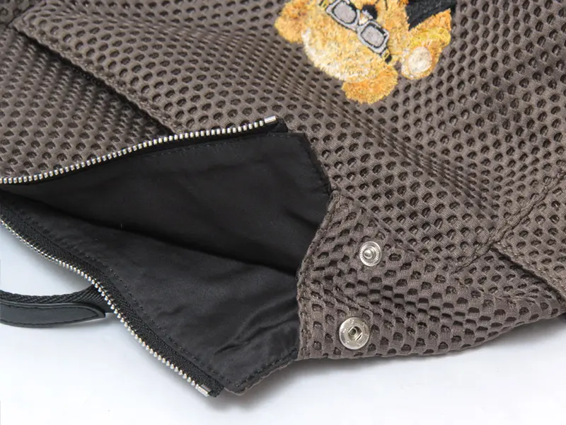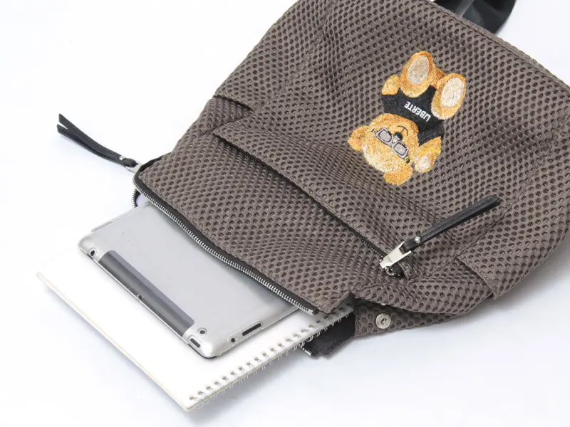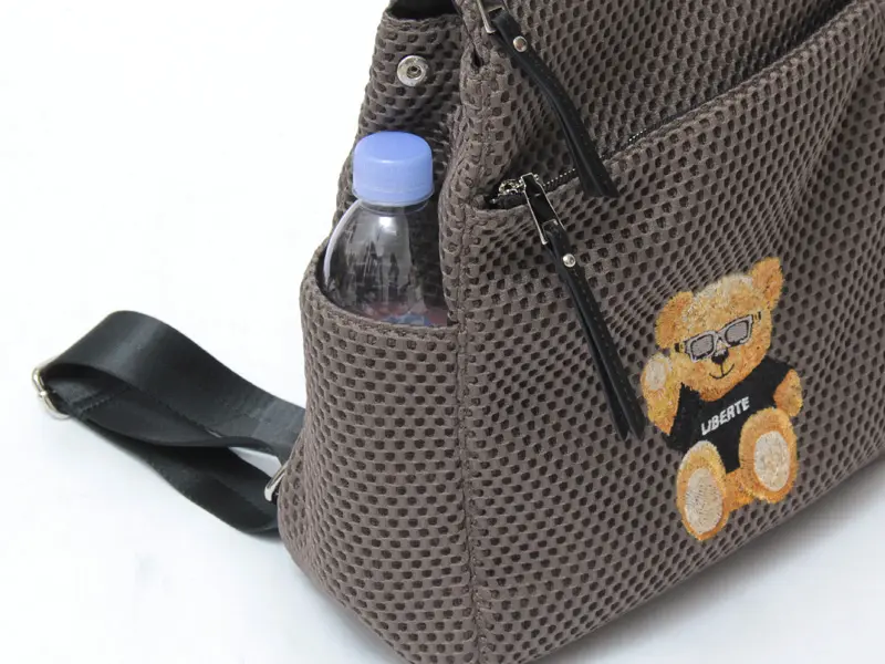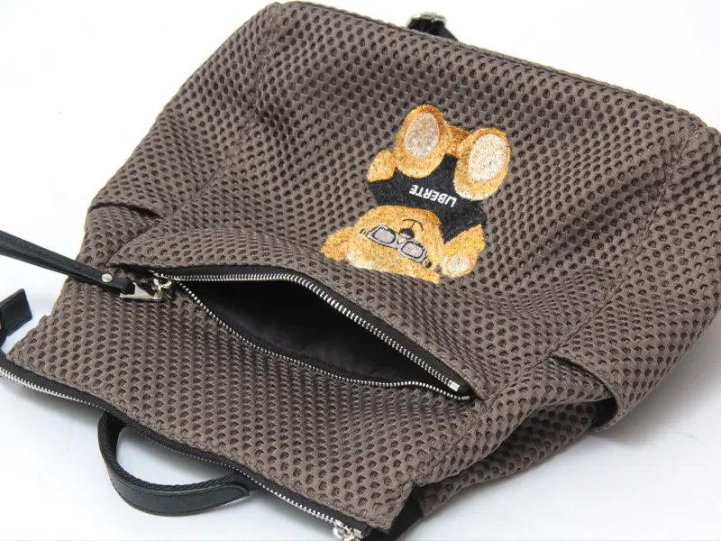 バッグ正面には、思わず目を引くアニマル刺繍をデザイン。シンプルなメッシュ素材に立体感のある刺繍が映え、さりげない遊び心をプラスします。軽やかさとデザイン性を兼ね備えた、大人も楽しめるカジュアルバッグです。