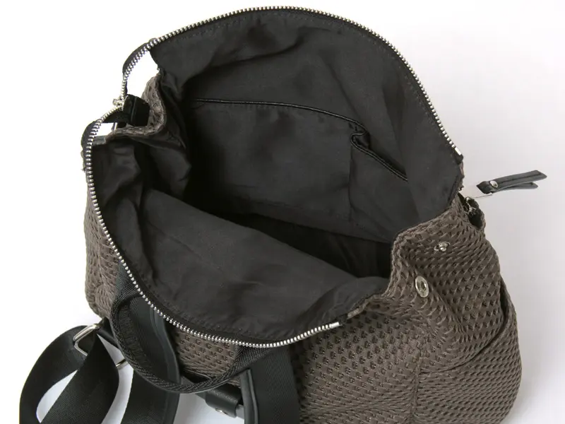 軽やかなポリエステルのメッシュ素材を使用。通気性のある軽やかな質感で、毎日気軽に持てる超軽量のリュックです。くったりと柔らかく、背負ったときも体になじむやさしい使い心地に。