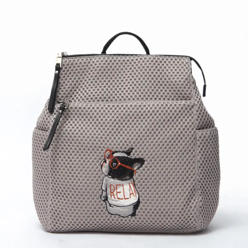 CHARUER シャルエ アニマル刺繍 メッシュ リュック ボストンテリア/グレー