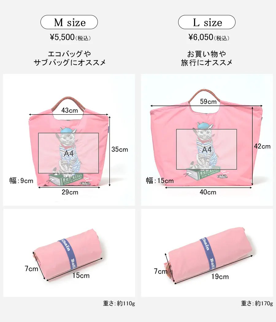 Mサイズ・Lサイズ展開で、日常のお買い物やレジャーシーンにも最適。折りたたんでコンパクトに持ち運べるのでサブバッグとしても便利です。厚手で耐久性のあるナイロン素材を使用し、撥水性も備えているため雨の日でも安心。デザイン性と機能性を兼ね備え、Ball & Chainならではの遊び心を日常にプラスできます。プレゼントやギフトにも喜ばれるアイテムです。