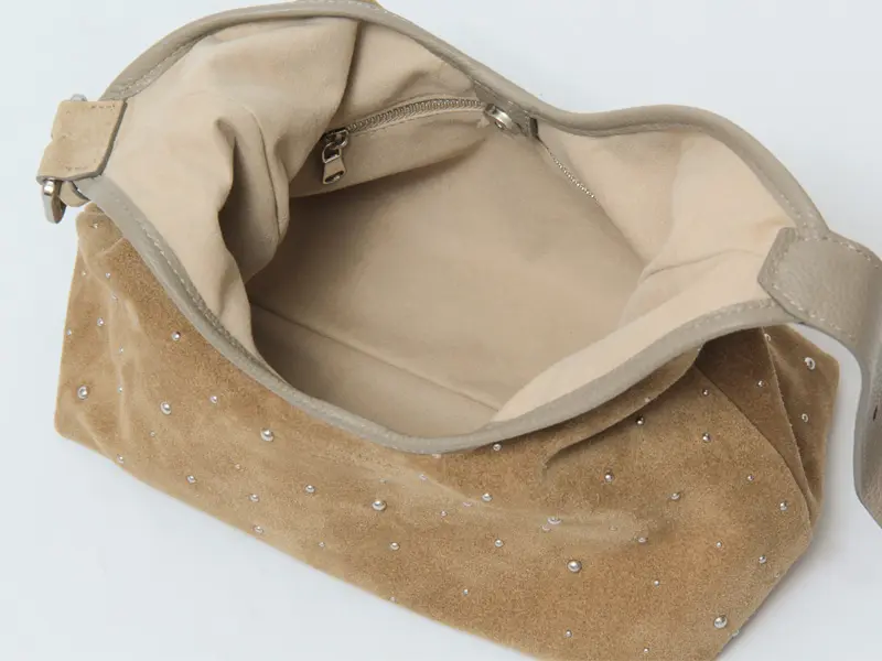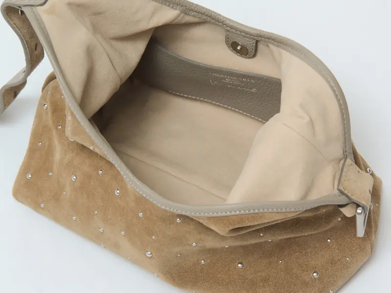 SOULはカーフレザーをベースに加工したスエード素材を使用。ベルベットのようななめらかな質感で、やさしい風合いと耐久性を兼ね備えています。ニュアンスのあるベージュカラーが上品な印象を与えてくれます。