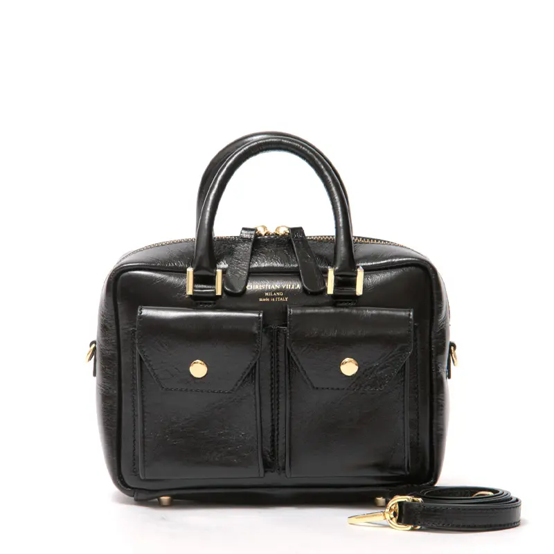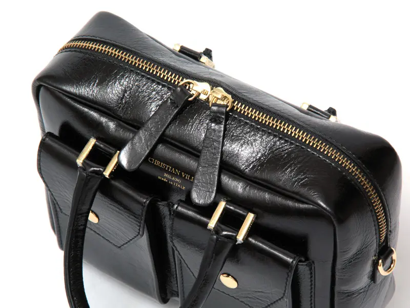 CHRISTIAN VILLA クリスチャンヴィラ Sophie レザー ダブルポケット 2way ボストンバッグ BLACK