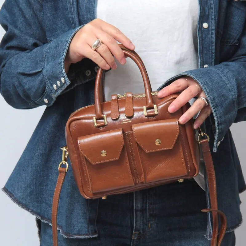 上質なレザーは、ほどよい光沢感があり、上品で洗練された雰囲気を演出。ミニサイズのコンパクトなフォルムで、ショルダーバッグとしても使える大人のレザーミニボストンバッグです。