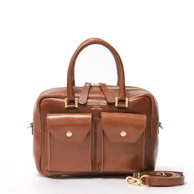 CHRISTIAN VILLA クリスチャンヴィラ Sophie レザー ダブルポケット 2way ボストンバッグ CAMEL