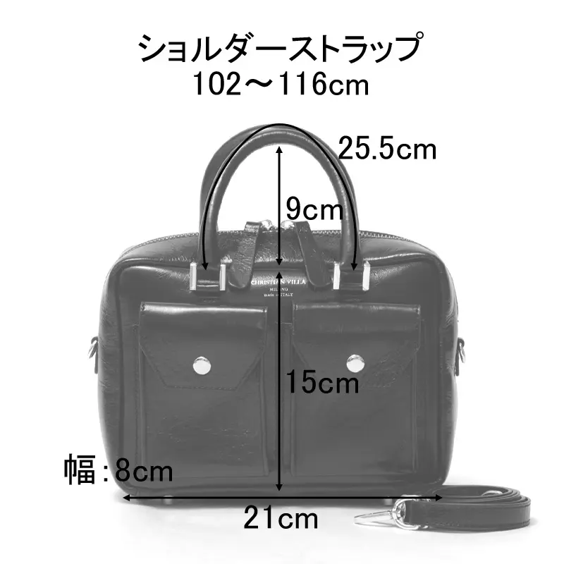 CHRISTIAN VILLA クリスチャンヴィラ / ダブルポケット レザー 2way ボストンバッグ 品番:6502