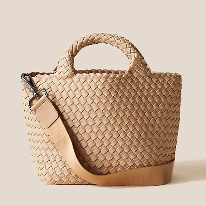 軽くて丈夫な弾力のある高密度フォーム素材を使用し、女性のライフスタイルに寄り添ったバッグを展開するNY発のバッグブランド"Naghedi/ナゲティ"。ダイビングスーツ等にも使われる機能性素材を丁寧に編み込んだメッシュ仕様のトートバッグ。取り外し可能なショルダーベルトを備えた2WAY仕様。長財布が収納可能なミニサイズは見た目以上の収納力で、デイリー使いしやすい絶妙なサイズ感です。シーンやコーデを選ばないテイストは、幅広い年代にオススメです。