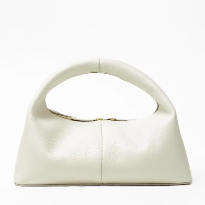ミニマルなデザインが上品な印象のワンハンドルバッグ。遊び心のあるドーナツ型のユニークなフォルムがモードなスパイスを加え、上質なレザーにゴールドファスナーがリッチなムードを演出。デイリーな装いを活性化してくれる大人のためのレザーバッグです。