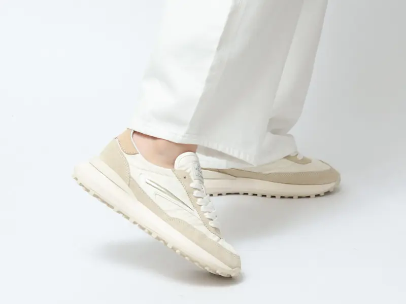 つま先はすっきりとしたフォルムで、スポーティーな印象の中にも洗練された雰囲気を演出。適度に反り上がったトゥデザインが歩きやすさにも配慮されています。